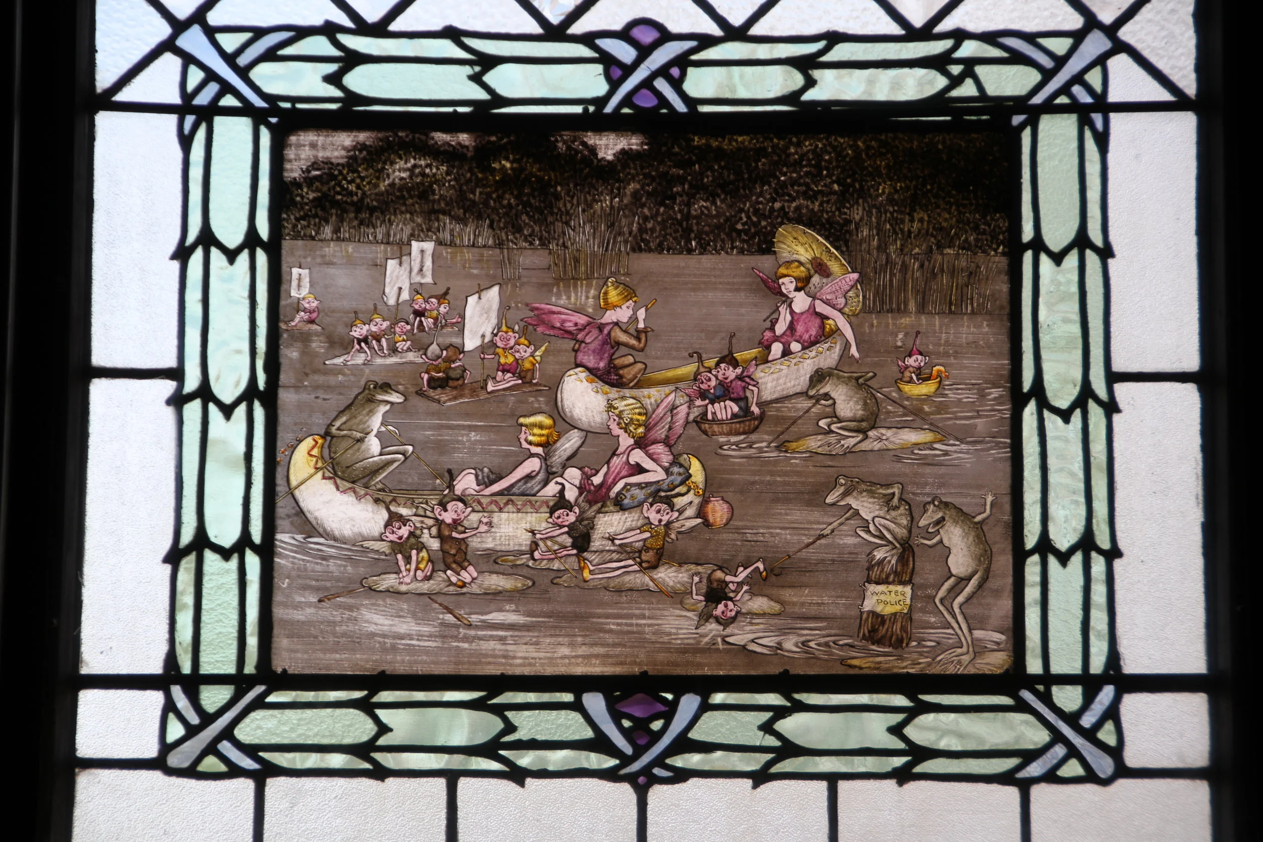 The red brick St Mark’s Community Centre, originally known as the Social Settlement buildings, was designed by the architectural firm Gawler and Drummond in 1923. This building contains a room which was the first free children’s library in Victoria and features stained glass windows featuring fairies and pixies in and Australian setting from book illustrations of Ida Rentoul Outhwaite.